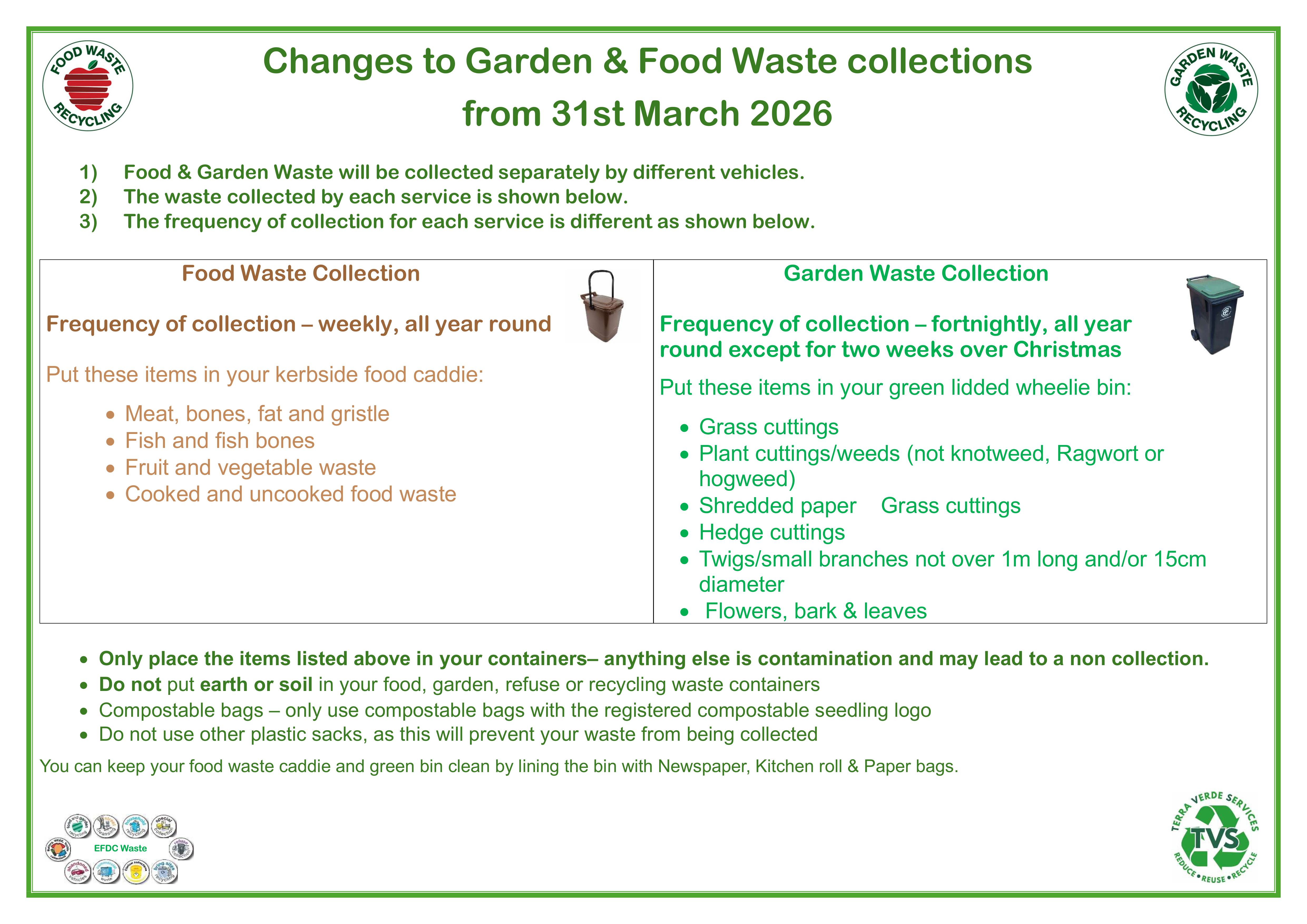 New Food & Garden Waste system details - in force from March 31 2026.
